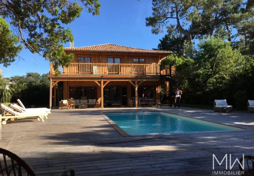 Cette jolie villa bois rénovée avec goût, résolument Ferré Capienne est située à la Pointe du Cap Ferret, à 100m de l'océan et 300m du bassin. Elle se compose d'une cuisine ouverte sur le salon/salle à manger, de 5 chambres et de 2 salles de bains.