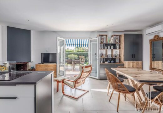 De belles terrasses en bois prolongent harmonieusement l’espace intérieur. Un spa hors-sol face au bassin, un boulodrome et un ponton privé permettant d’amarrer votre bateau viennent parfaire cet ensemble d’exception.